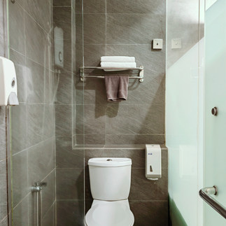 Selain satu katil queen, terdapat satu meja kecil di sebelah katil untuk menempatkan peralatan untuk membancuh kopi dan teh. Tidak terdapat cerek letrik disediakan, hanya jag sahaja. Jika pengunjung inginkan air panas, terpaksalah ke bahagian lobi kerana di situ terdapat satu mesin pemanas air. Di hadapan katil terdapat TV berukuran 32 inci yang dilekatkan di dinding. Di bawahnya pula terdapat satu rak panjang untuk meletak barang2 serta satu bangku kecil. Di sebelah kanan TV terdapat satu kabinet kecil untuk meletakan barang2 serta satu besi dan juga penyangkut baju di atasnya untuk pengunjung menyangkut baju. Kemudian di hujung sudut bilik terdapat sinki dan paip air (sinkinya terletak di luar bilik air). Bilik airnya pula dipisahkan oleh cermin yang separa lut cahaya (di atasnya adalah cermin lut sinar). Bilik airnya adalah berpintu cermin dan terdapat 2 bahagian. Bahagian hadapan adalah tempat mandi yang mempunyai 2 jenis shower, jenis siling dan juga pegang sementara di bahagian belakangnya adalah tandas. Di bahagian tandas terdapat gelung paip bagi keselesaan pengunjung.