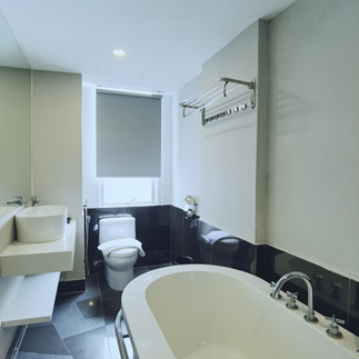 Bilik air hotel ini pula sederhana besar menempatkan sinki, tandas, ruang untuk shower serta bathtub, tetapi bathtubnya tidaklah besar. Ini adalah hotel yang paling murah yang mempunyai bathtub yang saya pernah inap setakat ini. Cuma mungkin yang menjadi ketidakselesaan pengunjung ialah bilik airnya tidak boleh dikunci, hanya mempunyai pintu sahaja. Untuk wifi pula, hotel ini ada menyediakan wifi percuma tetapi kelajuannya tidaklah laju, hanya 4.51mbps ketika saya mengujinya. Walau bagaimanapun, telco di hotel ini sangat laju di mana Celcom mencapai kelajuan 142mbps serta 107mbps pula untuk Digi.