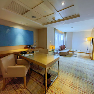 Bilik Deluxe Suite ini berkeluasan 538 kaki persegi. Ianya mempunyai dua bahagian, bahagian pertama seperti ruang tamu dan bahagian kedua adalah bilik. Apabila memasuki biliknya, terdapat satu meja study yang besar di hadapan pintu masuk di mana di atasnya diletakkan satu lampu study. Di sebelah meja ini pula terdapat satu kabinet yang menempatkan peti ais mini serta perkakas untuk membancuh kopi dan juga teh. Di hadapan meja study terdapat satu sofa yang agak besar di hujung ruangnya di mana di belakang sofa itu adalah tingkap bercermin. Tingkap ini mengadap ke Keramat. Di hadapan sofa pula terdapat satu meja kopi bujur yang sederhana besar dan TV bersaiz dalam 50 inci dilekatkan di dinding.
