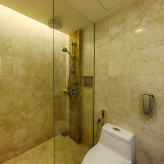 Untuk bilik airnya pula, ianya kecil sahaja menempatkan sinki, tandas dan juga ruang untuk shower. Terdapat 2 jenis shower disediakan dan tekanan air di bilik mandi sangat kuat. Saya sangat berpuas hati mandi di showernya. Tandasnya mempunyai bidet untuk keselesaan pengunjung.