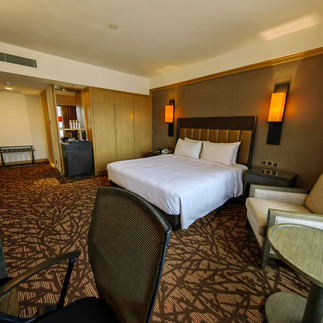 Saya menaiki lif ke tingkat 7 di East Wing bangunan. Lifnya cepat kerana tidak ramai pengunjung pada masa itu. Walaupun biliknya hanyalah 290 kaki persegi tetapi agak luas kerana bilik airnya yang kecil. Tidak seperti kebiasaan hotel, rekabentuk biliknya agak berlainan. Bertentangan dengan pintu masuk adalah bilik air (tidak seperti kebiasaan hotel di mana terdapat lorong di pintu masuk). Kemudian ke sebelah kanan adalah biliknya yang menempatkan satu katil king. Terdapat satu sofa dan satu meja kecil di sebelah kiri katil sementara meja study terletak di sebelah dinding di tepi tingkap. Di sebelah kanan katil pula terdapat almari yang menempatkan tempat menyangtut pakaian serta seterika dan juga peti simpanan keselamatan. Di sebelah almari pula terdapat satu rak menempatkan satu peti ais mini serta cerek letrik berserta cawan dan juga kopi. TV berukuran 43 inci dilekatkan di dinding.