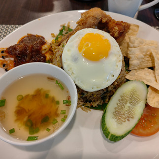Saya tiba di hotel kira-kira pukul 1.30 petang dan terus sahaja ke kaunter. Kaunternya terletak di lobi yang terletak di tingkat bawah (M floor). Selepas mendaftar saya diberitahu bahawa bilik belum lagi siap dan saya pun terlebih dahulu makan tengahari di restoran hotel yang terletak di paras yang sama dengan lobi. Saya memesan nasi goreng desa yang berharga RM34 dan juga sagu gula melaka yang berharga RM16. Bagi saya nasi goreng desa agak sedap begitu juga dengan sagu gula melaka. Semasa saya makan tengahari saya mendapat panggilan dari pihak hotel pada pukul 2.30 petang memaklumkan bahawa bilik saya telahpun sedia.