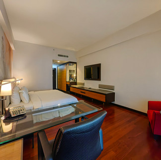 Biliknya kelihatan luas disebabkan ruang untuk bilik airnya yang kecil. Biliknya bersih menempatkan satu katil king serta satu sofa dan juga satu meja kecil yang diletakkan di sudut bilik berhampiran tingkap. Di tepi tingkap juga disediakan satu meja study yang agak besar serta satu kerusi untuk pengunjung melakukan kerja2 pejabat. Di kaki katil terdapat rak di sepanjang dinding serta TV dilekatkan di dinding yang mungkin berukuran 46 inci. Siarannya agak banyak tetapi bukanlah dalam bentuk HD.