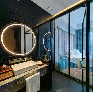 Walaupun bilik airnya tidak begitu luas, ianya sangat selesa bagi saya. Mempunyai dinding yang berwarna hitam menjadikan bilik air hotel ini nampak elegan. Bahagian luar pintu bilik airnya adalah seratus peratus cermin muka dan ianya boleh dikunci. Terdapat sinki, tandas dan juga ruang untuk pancuran (shower). Walau bagaimanapun hotel ini tidak menyediakan gelung paip di sebelah mangkuk tandas kerana menggunakan mangkuk tandas yang mempunyai pancuran dari dalam. Ruang untuk pancuran pula agak luas dan mempunyai pintu cermin. Dinding antara ruang pancuran dan katil adalah cermin lutsinar tetapi terdapat bidai disediakan jika pengunjung ingin menutup bahagian pancuran dari dilihat dari ruang katil. Peralatan mandian lengkap disediakan termasuklah berus gigi, sikat dan juga pencukur serta tuala tangan dan juga tuala muka. Pemandangan dari bilik saya adalah mengadap ke Stesen MRT Phileo Damansara.