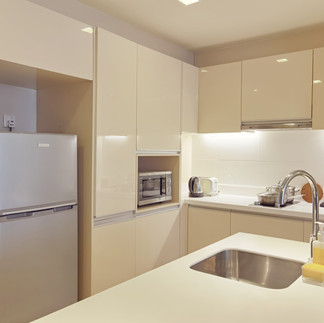 Seperti suite yang lain, bilik ini lengkap dengan segala peralatan yang diperlukan untuk memasak. Terdapat dapur letrik dan juga microwave. Selain itu peti sejuk juga adalah besar (2 pintu) serta peralatan2 memasak yang lain turut disediakan bagi kemudahan tetamu (seperti di dalam gambar). Untuk view pula, bilik yang saya dapat ini mengadap ke Hotel Istana.