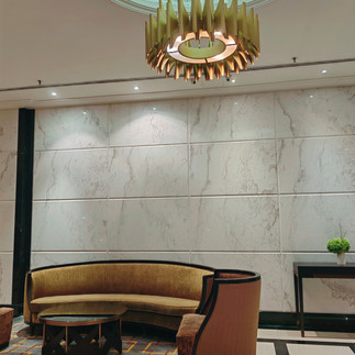 Saya tiba di hotel pada pukul 2.45 petang dan terus sahaja ke kaunter yang terletak di lobi hotel (waktu check-in hotel ini ialah pada pukul 3 petang). Lobi hotelnya cantik, tetapi pencahayaannya agak suram (dan ini adalah imej hotel ini sebenarnya). Terdapat 4 kaunter dan saya terus sahaja membuat pendaftaran masuk. Proses pendaftarannya adalah cepat dan deposit sebanyak RM200 dikenakan. Oleh kerana saya adalah ahli Marriott Bonvoy, saya diberi naik taraf bilik kepada esekutif deluxe. Bilik ini lebih besar dengan keluasan 484 kaki persegi. Layanan yang saya terima semasa proses check-in sangat memuaskan.