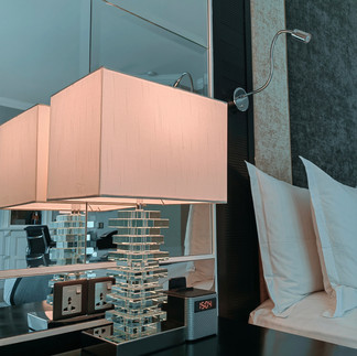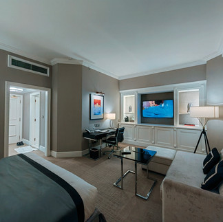 Di ruang biliknya pula selain satu katil king, terdapat satu sofa yang agak besar di kaki katil di bahagian tingkap dan juga satu meja kecil empat segi sama di hadapannya. Di bahagian dinding mengadap ke kaki katil pula terdapat satu kabinet yang besar di mana di tengah-tengahnya terdapat TV yang besar bersaiz 55 ataupun 60 inci. Di bahagian kirinya terdapat pembancuh kopi dan juga air mineral yang diletakan di dalam 2 botol kaca. Peralatan untuk membancuh kopi dan teh diletakan di satu kotak yang cantik. Di bahagian bawah kabinet ini terdapat ruang tertutup yang menempatkan cawan dan juga gelas serta cerek letrik. Di bawah TV pula ruang tertutup ini menempatkan satu peti ais mini di mana di dalamnya terdapat minuman dalam tin yang perlu dibeli dan ianya bukanlah percuma (satu tin berharga RM15). Di sebelah dinding bertentangan sofa terdapat satu meja kerja yang agak besar di mana di atasnya diletakan satu lampu. Satu kerusi disediakan untuk pengunjung melakukan kerja-kerja pejabat.