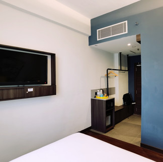 Melalui trip.com saya memilih bilik superior yang berharga RM111.52 (tanpa sarapan). Biliknya kecil sahaja hanya mempunyai keluasan 204 kaki persegi. Selain satu katil queen, biliknya mempunyai meja study di tepi katil. Di pintu masuk terdapat satu rak untuk menyangkut baju serta satu kabinet untuk menempatkan satu peti ais mini dan juga cerek letrik serta cawan. Tiada almari baju disediakan di bilik jenis ini. Interiornya simple sahaja tetapi agak menarik dan cantik juga.